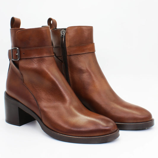 Women's Heeled Mid Boot in Calf Leather Tobacco Tan (GC2560)
