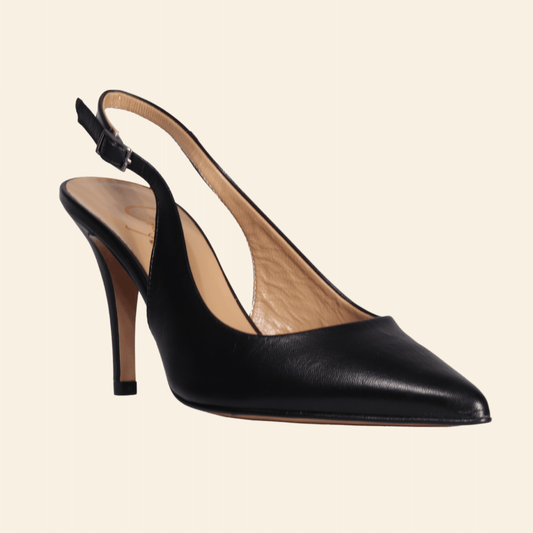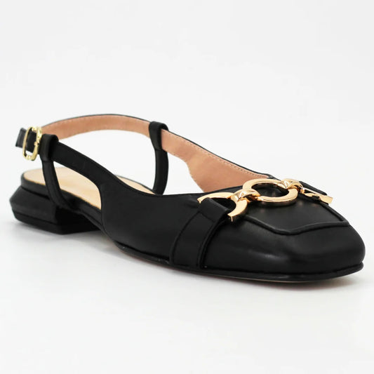 Ladies Genuine Leather Elegant Sling Back Court Heel in Nero by Aliverti (CRB123)