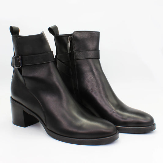Women's Heeled Mid Ankle Boot in Calf Leather Nero Black (GC2560)
