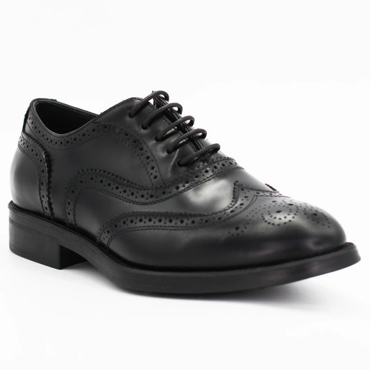 Women's Derby Brogue with Studs in Calf Leather in Nero Black (JPD0828/7)