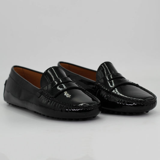 Women's Genuine Leather Vernice Driver Shoe in Nero Black (COND0402)