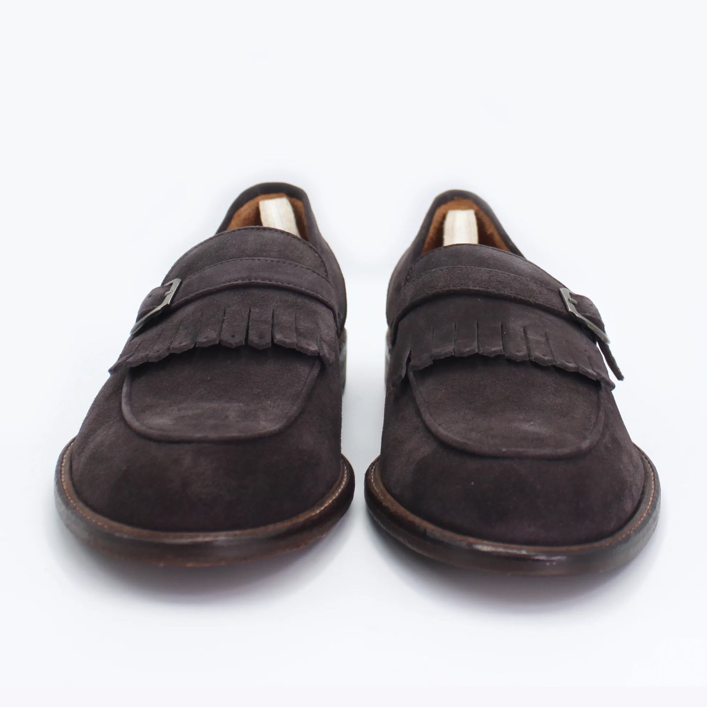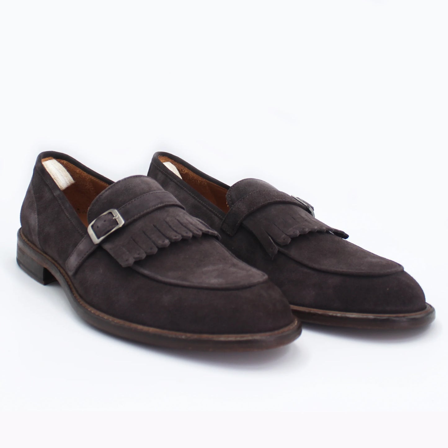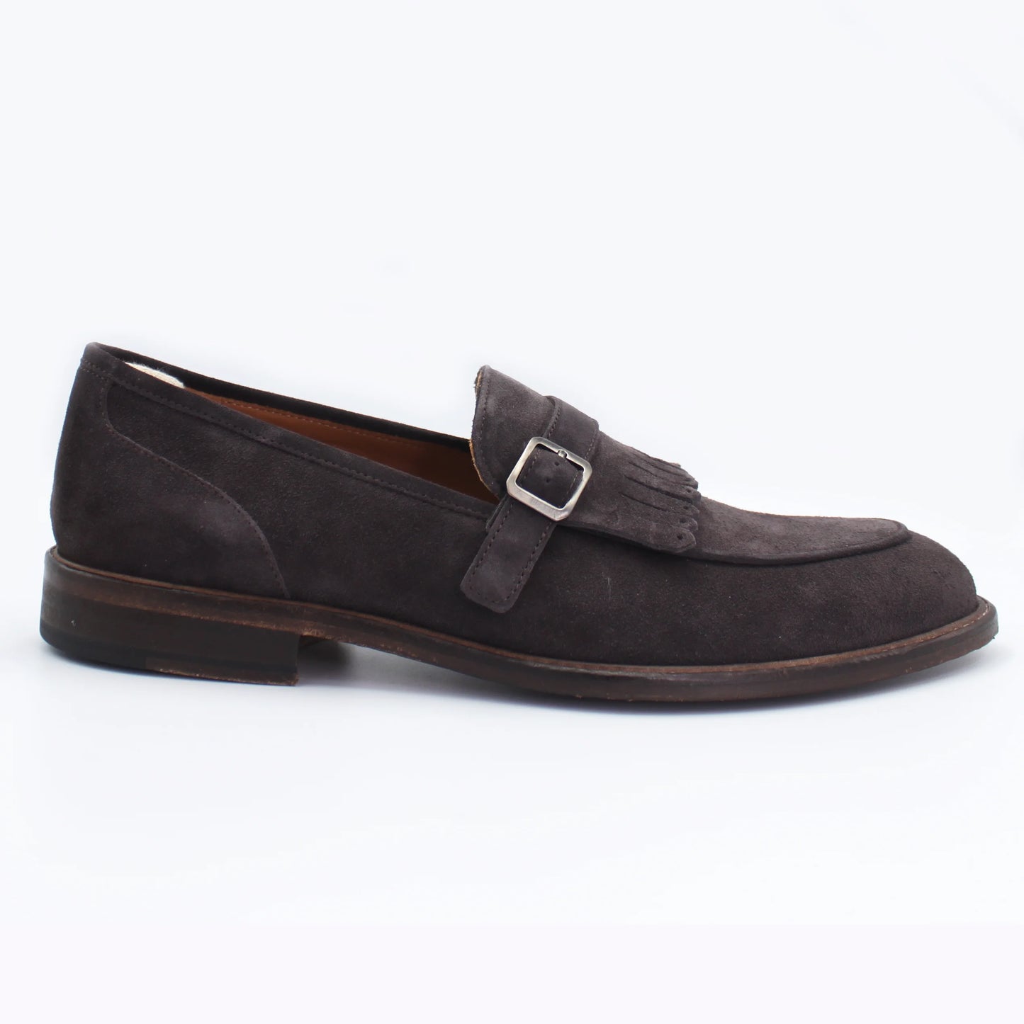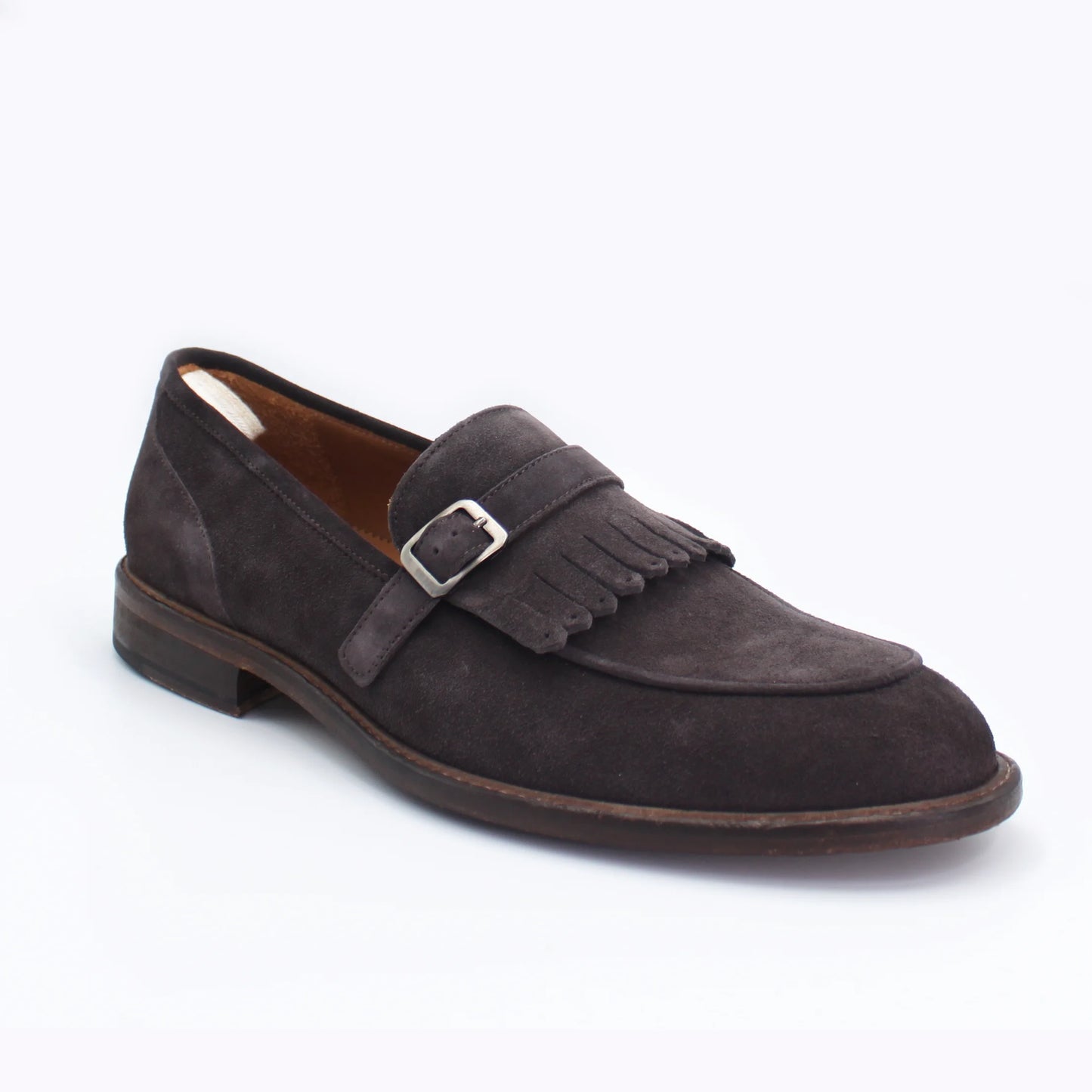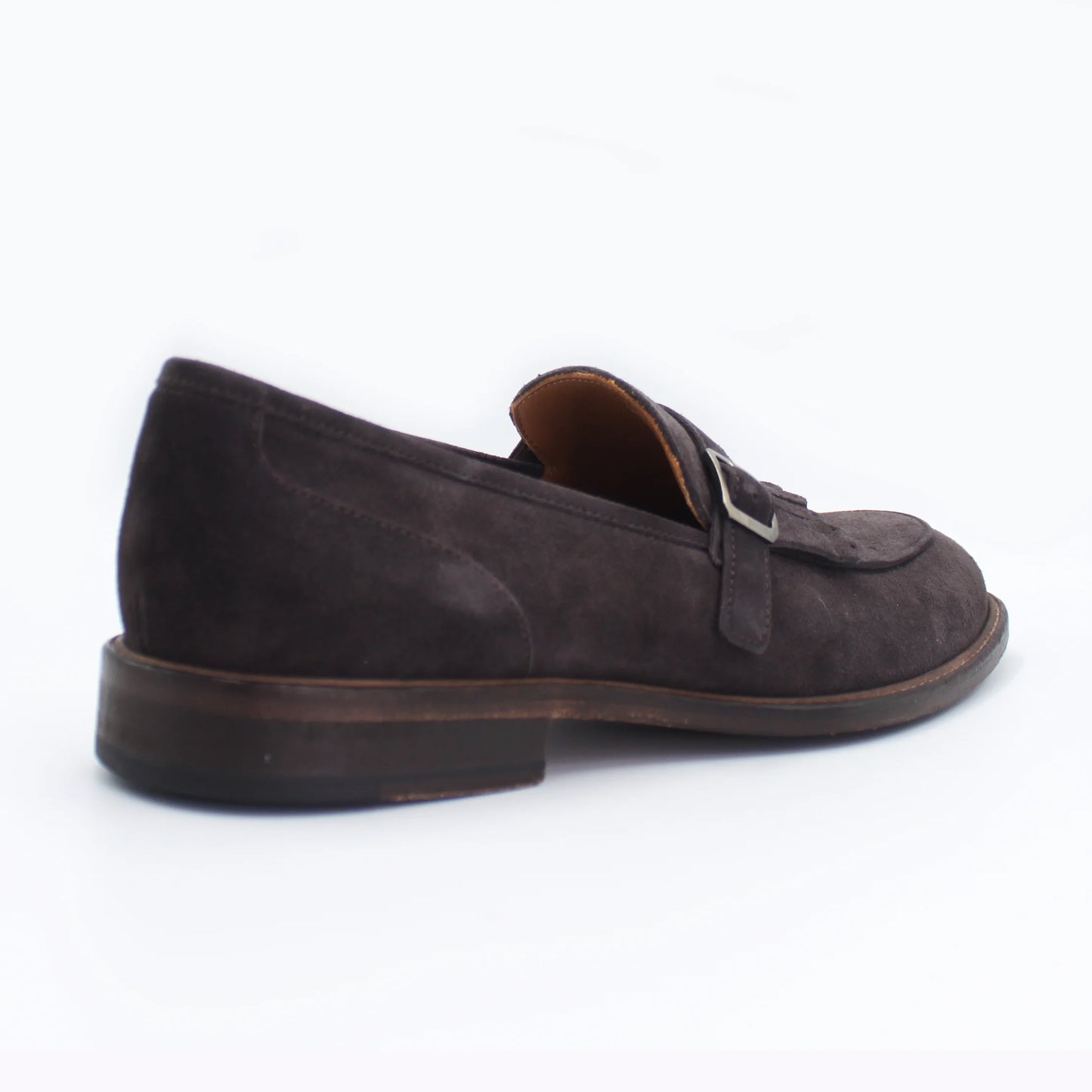 Men's Genuine Suede Leather Moccasin with Buckle in Testa di Moro (AC337)
