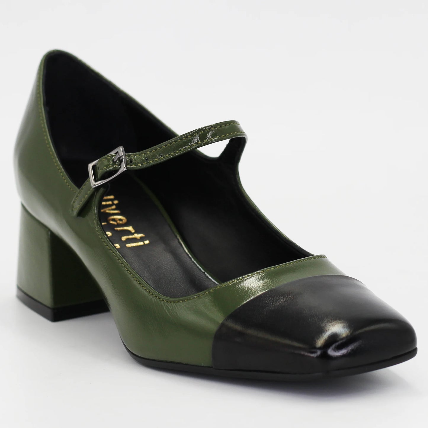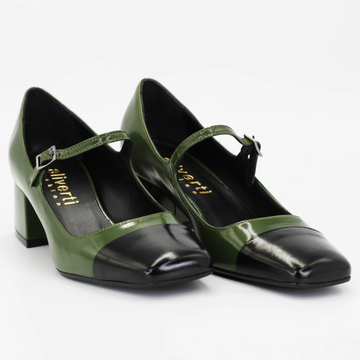 Women's block heel mary-jane in calf leather nero and verde (elide 7)
